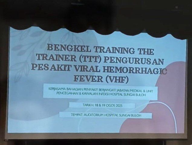 Bahagian Penyakit Berjangkit, Jabatan Perubatan dan Unit Pencegahan & Kawalan Infeksi, Hospital Sungai Buloh dengan kerjasama Unit Kawalan Infeksi, Cawangan Pengurusan Risiko dan Survelan Klinikal telah menganjurkan Bengkel Training The Trainers (TTT) Pengurusan Pesakit Viral Hemorrhagic Fever (VHF) pada 18–19 Ogos 2025 bertempat di Pusat Kawalan Kusta Negara, Sungai Buloh.